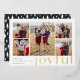 Share holiday greetings with these chic Christmas photo cards featuring five favourite photos in a collage layout (4 square and one portrait/vertical). "Joyful" appears along the bottom in modern gold foil lower case lettering, with your custom holiday greeting, family name, and the year aligned at the left. Cards reverse to a festive pine tree pattern.