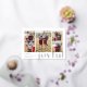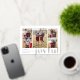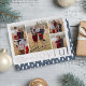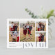 Share holiday greetings with these chic Christmas photo cards featuring five favourite photos in a collage layout (4 square and one portrait/vertical). "Joyful" appears along the bottom in modern silver foil lower case lettering, with your custom holiday greeting, family name, and the year aligned at the left. Cards reverse to a festive pine tree pattern.