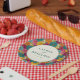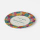 This vibrant wedding plate features a lively floral pattern with densely packed flowers in shades of orange, pink, teal, and yellow, creating a cheerful mosaic. The central circular element is framed by elegant lines, showcasing customizable text in a sophisticated serif font for names and a simple sans-serif style for the date. The design exudes a joyful and festive mood, perfect for celebrating special occasions like weddings. Its playful yet polished look makes it an ideal choice for adding a touch of elegance to your event decor.