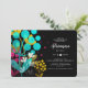 A dramatic invitation with whimsical flowers in electric hues of teal, fuchsia, gold and white against a black backdrop. (<a href="https://www.vecteezy.com">Free Vector Art by vecteezy.com</a>). <br/><br/>The card is easy to customise with your wording, font, font colour and choice of six paper types.<br/><br/>Not exactly what you're looking for? All our products can be custom designed to meet your needs at no extra charge.<br/><br/>Simply contact us at askcottonlamb@gmail.com<br/><br/>Coordinating products available: