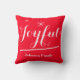 Joyful Cool Script Personalised Name Chic Rustic Red Christmas Throw Pillow. Click Personalise this template to customise it with the family name or