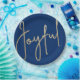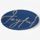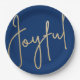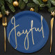 Joyful in a faux gold foil script on these blue paper plates in 2 sizes, are stylish for any Christmas holiday occasion or give as a hostess gift. MATCHING items in our store.