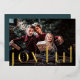 Elegant Christmas photo card features a single horizontal or landscape-orientated photo with "Joyful" overlaid in oversized gold foil lettering that extends to the bottom edge of the card. Personalise with your family name or individual names and the year beneath in modern white lettering. A simple and chic choice for your holiday 2022 greetings.