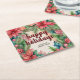 Joyful Green Wreath & Red Poinsettia Holiday Square Paper Coaster