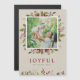 Affordable custom printed magnetic photo cards with simple templates for customisation. This festive design features an elegant watercolor floral border of holly leaves and poinsettia flowers in red, green and burgundy colours on a faux linen burlap background. Personalise it with your photos and custom text. Reverse side has a custom holiday greeting or use the space to add additional photos. Use the design tools to choose any background colours, edit the text fonts and colours, upload more photos and create a one of a kind holiday photo card magnet.