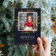 Affordable custom printed magnetic photo cards with simple templates for customisation. This festive design features an elegant watercolor floral border of holly leaves and poinsettia flowers in red, green and burgundy colours on a navy blue background. Personalise it with your photos and custom text. Reverse side has a custom holiday greeting or use the space to add additional photos. Use the design tools to choose any background colours, edit the text fonts and colours, upload more photos and create a one of a kind holiday photo card magnet.