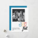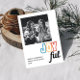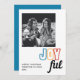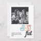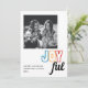 Colourful and minimal, all at the same time. A truly Joyful holiday card. Crisp white card with red, gold, and teal lettering. Place for personal photo.