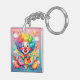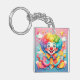 A vibrant cartoon clown with a contagious smile, surrounded by a whimsical world of colourful shapes, stars and clouds. The clown's curly hair and outfit are a kaleidoscope of pastel colours, matching the playful atmosphere. The image excludes happiness and carefree joy, perfect for bringing a smile to anyone's face.