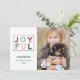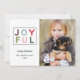 Celebrate the season with this cheerful holiday card featuring the word JOYFUL in a modern color-block style beside your favorite photo. Clean lines and playful typography create a fresh, minimalist design that’s perfect for family, couple, or pet portraits. The back showcases coordinating festive stripes for a polished, contemporary finish.