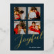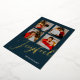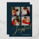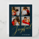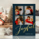 Joyful Modern Minimalist Blue Gold Script Photo Real Foil Holiday Card. Send Holiday Greetings with photos to your loved ones with this festive and Modern Foil Holiday Card. All the texts are pre-arranged for you to personalise easily and quickly with your own details. Happy Holidays!