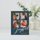 Joyful Modern Minimalist Blue Script 4 Photo Holiday Postcard