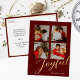 Joyful Modern Minimalist Red Gold Script Photo Foil Holiday Postcard