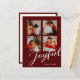 Joyful Modern Minimalist Red Script 4 Photo Holiday Postcard