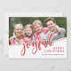 This modern holiday photo card features whimsical calligraphy script text says JOYFUL in red and white. It comes with a matching snowflake pattern design on the back where an additional photo can be added.