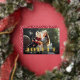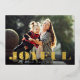 Festor and cheerful holiday card features your favourite horizontal or landscape orientated image with "joyful" overlaid in gold foil paper cutout style lettering. Customise with your custom Christmas greeting beneath. Cards reverse to a wintry botanical pattern in white on red.