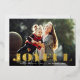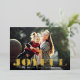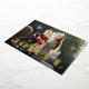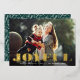 Festor and cheerful holiday card features your favourite horizontal or landscape orientated image with "joyful" overlaid in gold foil paper cutout style lettering. Customise with your custom Christmas greeting beneath. Cards reverse to a wintry botanical pattern in white and forest green.