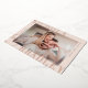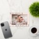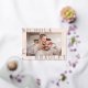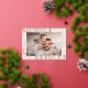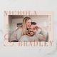 Share the news of your engagement with these elegant save the date cards featuring a horizontal or landscape oriented photo with your names aligned at the corners in classic lettering, slightly overlapping your photo and extending past the edges of the paper for a modern look. Personalize with two lines of custom text along the sides for your wedding details, with an additional text field on the reverse side.
