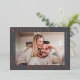 Share the news of your engagement with these elegant save the date cards featuring a horizontal or landscape orientated photo with your names aligned at the corners in classic lettering, slightly overlapping your photo and extending past the edges of the paper for a modern look. Personalise with two lines of custom text along the sides for your wedding details, with an additional text field on the back.