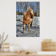Joyful Palomino Pinto Horse and Snow Poster
