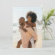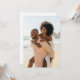 This wedding invitation features a joyful beach scene with two individuals enjoying a carefree moment by the ocean. The design showcases a soft pastel colour palette, including light pink and crisp white, set against the natural blues of the sea and sky, creating a serene yet vibrant atmosphere. Captured in a realistic style, the composition emphasizes warmth and positivity, perfect for celebrating love and companionship. The layout centres on the subjects, allowing the expansive view of the sandy shore and waves to enhance the sense of freedom and tranquillity. Ideal for couples who cherish leisurely moments by the coast, this invitation conveys a mood of happiness and connection.