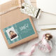 Joyful script, photo and Christmas tree holiday favour and postage sticker. Part of a holiday collection. Colours can be changed.