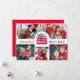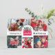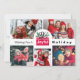 A photo collage for 5 of your family photos to share of your joyful season. Wishing you a joyful season is integrated with a red, black and white present with holly set in an arched border.