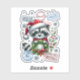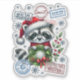 A charming racoon dressed in a Santa hat holds a lush wreath adorned with festive greenery.