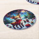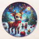Joyful reindeer in winter wonderland with friends round paper coaster