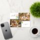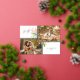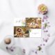 Lovely two-photo template with gold foil frames, pastel watercolor leaves and berries and editable "Joyful" calligraphy script and text fields. Back features complementary gold-framed floral label and additional text fields.