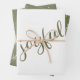 Joyful Script Snowflake Olive Green Holiday Wrapping Paper Sheet