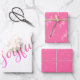 Joyful Script Snowflake Pink Holiday Wrapping Paper Sheets