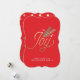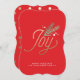 This die cut holiday card features a bright red background with a beautiful faux gold foil Joy and stylish gold polka dot back.