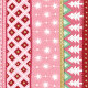 Joyful gift wrap with a Christmas stripe pattern full of stars, trees, and hearts. Original artwork by Marketa Stengl.