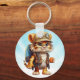 Joyful Tiger Cub with Backpack and coffee Key Ring