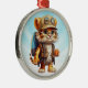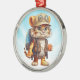 Joyful Tiger Cub with Backpack and coffee Metal Tree Decoration