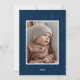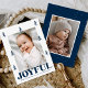 Celebrate the season with this festive photo Christmas card featuring your vertical photo framed by elegant navy hand-drawn pine trees on a crisp white background. Bold navy "Joyful" lettering showcases your personalised holiday greeting and family name below. The card reverses to reveal an additional photo set against a coordinating navy background with subtle white dots, making it a perfect way to share warm, festive wishes.