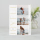 A chic and elegant holiday card design featuring three photos aligned at the right in a vertical layout. "Joyful" appears alongside your photo in modern gold foil lettering. Personalise with your family name and custom holiday greeting along the right side for the perfect finishing touch to these cool minimalist Christmas 2022 photo cards with gold foil accents.