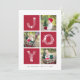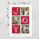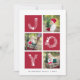 Share holiday greetings with these photo Christmas cards featuring three of your favourite square photos in a gridded layout, alternating with "JOY" in festive white typography formed with Christmas botanicals and holiday flowers. Add your family name or names and the year along the bottom. Cards reverse to a matching holiday botanical pattern. A fun and festive red and white design that's perfect when you can't choose just one favourite snap!