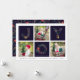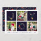 Share holiday greetings with these photo Christmas cards featuring three of your favourite square photos in a horizontal gridded layout, alternating with "JOY" in festive typography formed with Christmas botanicals and holiday flowers. Add your custom greeting, family name and the year along the bottom. Cards reverse to a matching holiday botanical pattern on rich midnight blue.