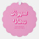Send unique holiday greetings with these stylish photo Christmas cards that double as ornaments or large gift tags! They feature a disco ball design in magenta pink on the front, along with a horizontal orientated photo template. The back contains retro styled typography reading, "Joyful Vibes," as well as text templates for simple personalisation!