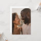 This wedding invitation features a warm and intimate design, showcasing two individuals sharing a joyful moment. The layout centers on their affectionate interaction, with soft lighting enhancing the natural tones of earthy browns and subtle pinks from their attire. The photographic style captures realistic details, emphasizing genuine emotion and connection. Perfect for celebrating love and happiness, this design conveys a tender and heartfelt atmosphere, ideal for couples looking to share their special day in a candid and authentic way.