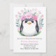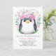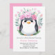 Joyful Watercolor Penguin Girl Baby Shower Invitation