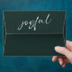 Joyful White Script Return Name Address Dark Green. For 5 x 7” cards and invites. Easily personalise with your name and return address. Joyful is in a modern playful set script in white on the back flap which can be changed to another colour if you so wish via the Edit further option where you can also make other edits as required.