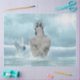Tissue paper with image of a mermaid in the sea in colours of blue and white.