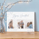 Send Hanukkah greetings to friends and family in chic style with our elegant photo cards. Designed to accommodate three of your favourite photos arranged side by side in a collage format, card features "joyous Hanukkah" in casual hand sketched script lettering adorned with hand drawn stars at the corners. Personalise with your family name and the year at the bottom.