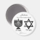 The third part of my "World Religions" Series, Judaism. The magnet features the Star of David and the Menorah with the hebrew names.