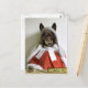 Another cute photo in the anthropomorphic postcard series: The Adventures of Ally, The Australian Kelpie dog. Here she is dressed as a Judge, wearing glasses, a court wig and gown with a wing collar. She's currently presiding in court, listening to the prosecutor, so no interruptions please, or she might just bang her gavel! Photographer: Louise Docker