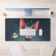 Judging Sphynx Cat UFO Space Cartoon Art Desk Mat
