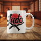 Bold, simple, and full of motion — this design captures the essence of Judo with expressive brush lettering, a striking red sun backdrop, and the iconic black belt tied in front. It celebrates the art of balance, respect, and precision - the harmony of strength and control that defines the martial way. Created in a dynamic ink-brush style inspired by traditional Japanese calligraphy, it brings together art and discipline in one powerful composition. Perfect for martial artists, coaches, students, and anyone who values focus, perseverance, and the quiet confidence that comes from training. A statement piece for those who understand that true strength isn’t loud - it’s earned.