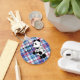 Happy and Cute Panda Cartoon created by Naomi Ochiai from Japan. Judo Panda design for Judo Fans! He is wearing a Black Belt proudly. Blue plaid background. You can customise text!